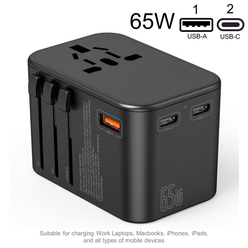 This cutting-edge universal adapter harnesses advanced GaN & PD technology, providing rapid 65W charging for your laptops, MacBooks, iPhones, Android devices, and tablets. With two USB-C ports and one USB-A port, you can charge up to three devices at once, ensuring you’re always connected.